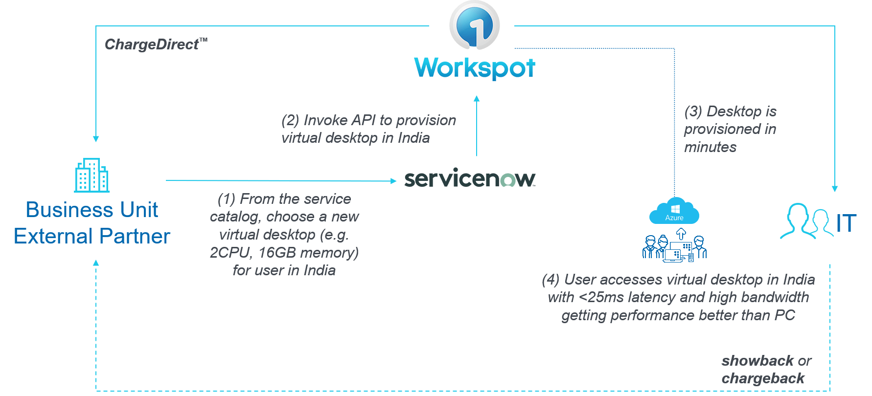 Workspot allows the Windows 10 desktop to be controlled, standardised and delivered exactly the same way over and over again. Since Workspot deploys exclusively on Azure, the underlying virtual machine type is controlled also and it’s identical each time. This comes in very handy if you want to insist that your developers develop on the same platform as the users will be on. Workspot hides all of the complexity associated with delivering virtual desktops as well as all the Azure complexity, making it easy for IT teams to deliver exactly the cloud desktop or workstation needed for each use case. IT leaders don’t have to worry about having Azure skills on the team; your IT admin doesn’t have to know what a Resource Group is or which Azure VM type to pick – that’s all handled by the Workspot turnkey service.