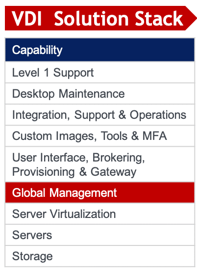 Most of the cost of legacy VDI stems from day-to-day operations. All of this complexity requires an organization to commit multi-function, level 2 / level 3 IT skill sets to operate their VDI infrastructure. The litany of day to day challenges when users cannot connect or are experiencing poor performance demands ongoing troubleshooting by these valuable people to continually address server, storage, virtualization, networking, and end point issues. In an attempt to get in front of these issues, companies often use third party monitoring tools to diagnose and troubleshoot user issues. The challenge is that these third party tools can’t always access the systems where issues are occurring; they are limited by how observable all of the underlying systems are.