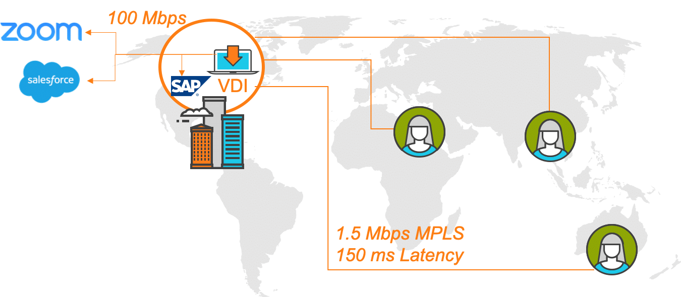 Remote VDI users connect back to their virtual desktops on slow, high-latency MPLS links. All application traffic then flows through the data center, whether it’s an on-premises application such as SAP or a SaaS application such as Salesforce. As a result, most knowledge workers hate the performance of VDI, and it has been relegated to task worker use cases, where its popularity is not much better.