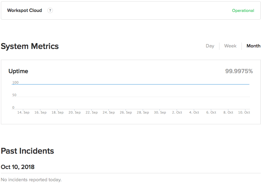 These metrics should be transparent and easy to understand as in the Workspot example above. It’s important to see how the service has been trending and not just show how things are right this second to get a complete and accurate understanding. Trawling through the history will give you a good sense of the complexity of a system and the number and types of problems they have had over the years. The length of the history also matters to get a sense of how mature the vendor is in their cloud service operations knowledge.