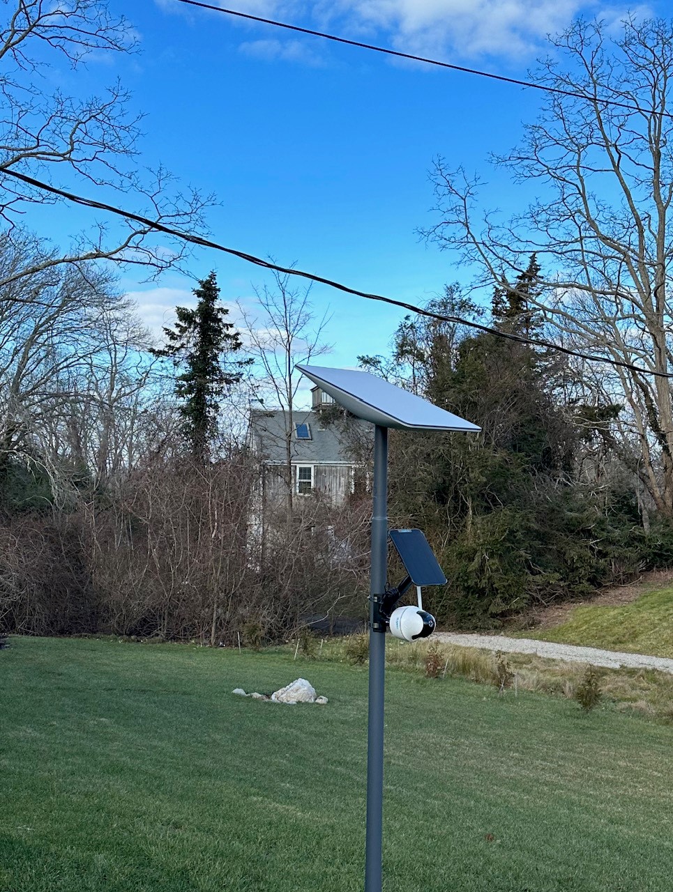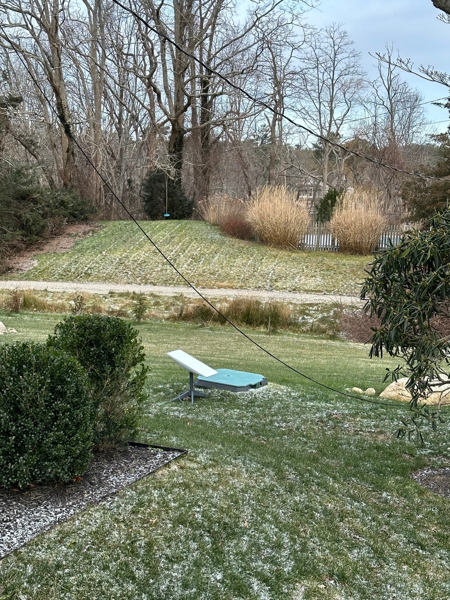 The photos below show my ‘Dishy McFlatface’ or ‘Dishy’ for short (Starlink’s name for the receiver). The first photo shows Dishy on the ground. Notice the nearby broadband cable on the ground after a particularly fierce windstorm blew the cable off a utility pole. It took a couple of days for the provider to reconnect our service and we relied on Starlink during this period. The second photo is Dishy mounted on its forever home, a steel pole.