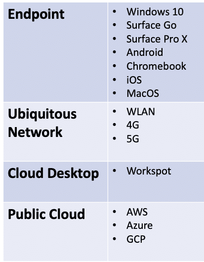 - A low-cost endpoint: Microsoft Surface Go, Chromebook, and Android phones are popular with our customers. Have power users? You can easily connect these devices to a keyboard and multiple monitors when you need large-screen productivity.