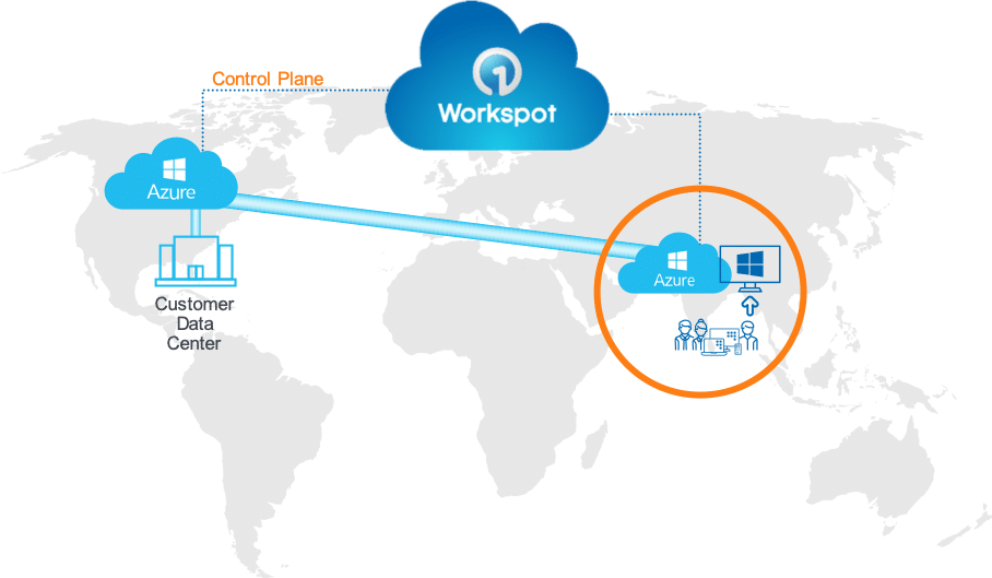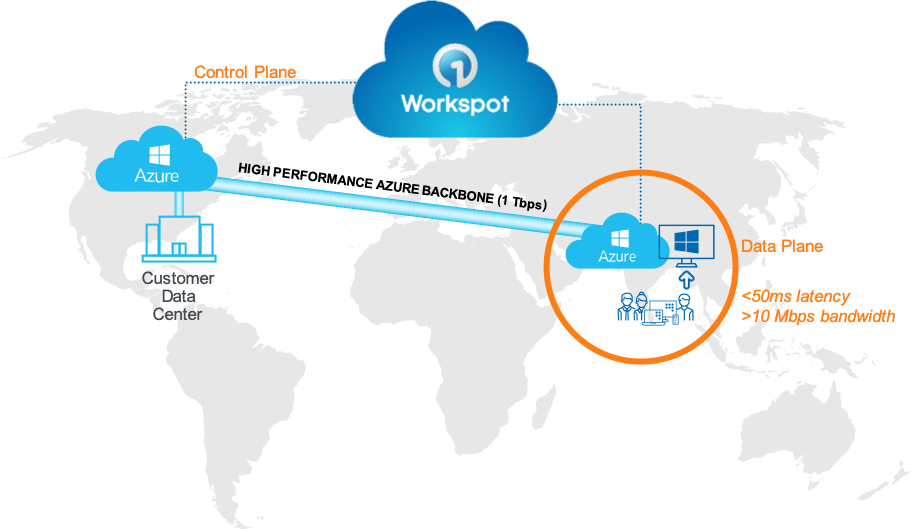 Workspot changes all that. Because of the way we designed the Cloud Desktop Fabric, you can locate your end-users’ desktops within the cloud regions nearest them. This typically places them within 50ms of their desktop, and that’s latency they won’t even notice. Even power users who rely on CAD applications for their work are astonished when they see performance from their Workspot cloud workstations that’s as good as or better than their physical workstation. So, cloud desktop proximity is key, plus all your data center traffic flows through a high-performance cloud backbone.